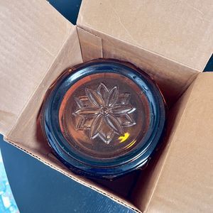 Vintage 1971-1989 New in Box Indiana Glass Tiara Sandwich Amber 7” Kitchen Stora