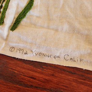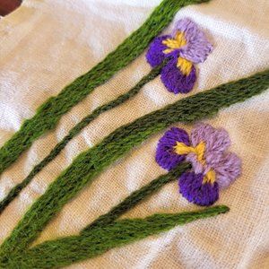 Vintage 1972 Embroidery Handmade Asian Lady Geisha Iris Slow Stitch Cottagecore