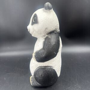 The product is a vintage 1972 Empire Plastic Corp blow mold baby panda piggy bank standing at 11 inches tall. Made of plastic, this cute and collectible item features a unique animal shape that adds to its charm. Perfect for collectors of animal-shaped banks or vintage memorabilia, this adorable piggy bank is sure to bring a smile to anyone's face.