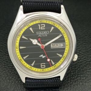 Vintage 1972 Seiko Automatic Mens Silver Watch W/daydate & Yellow accents