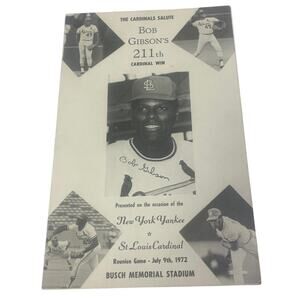 Vintage 1972 St Louis Baseball Cardinals Bob Gibson 211th Win Program and Photos