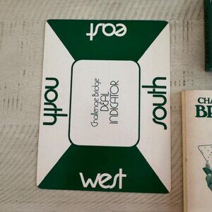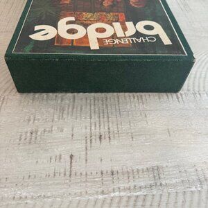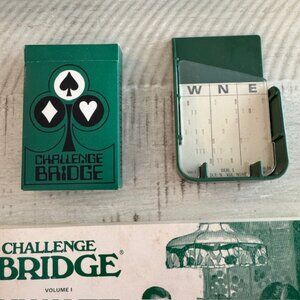 1973 Vintage Challenge Bridge part of the 3M Bookshelf series popular in the 1960's and 1970's. Game is complete and components in excellent condition. Bookshelf box is fully intact but does show some wear at edges. See photos for details. Using a special deck of cards and a punch card overlay, this games allows 4 people to play what amounts to tournament Bridge. There are 100 predetermined deals taken from American Contact Bridge League tournaments. Each partnership does not score raw points as in rubber bridge, but rather points in comparison to how other partnerships did playing those same hands in tournaments.