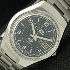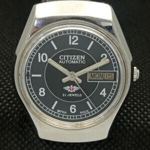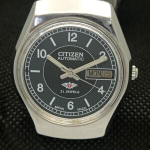 Vintage 1973 Citizen Automatic Mens Silver Watch W/daydate & Black accents