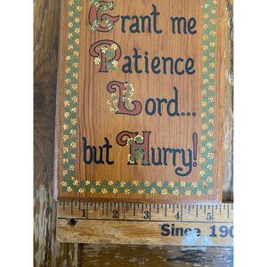 Vintage 1973 H.C. Maher Hand Painted Wood Wall Plaque "Grant Me Patience Lord Bu