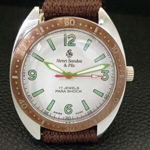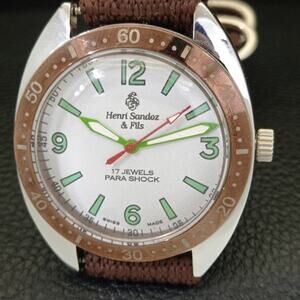 Vintage 1973 Henri Sandoz Manual Mens Silver Watch W/Nato Strap