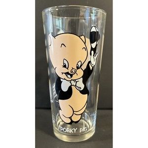 Warner Bros Looney Tunes Pepsi Collector Series Porky Pig Drinking Glass Tumbler - Very nice condition - minimal occasional light scratching - It stands 6 1/4" tall x 3" across the rim.