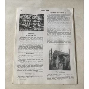 Contains black-and-white photographs, illustrations and text pertaining to historic grist mills.