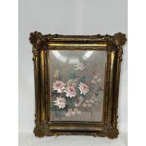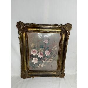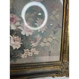 Vintage 1973 Plastic Dart Framed Floral and Butterflies Picture Under Glass