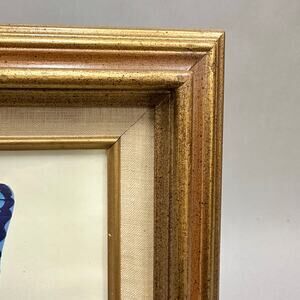 Good preowned condition - the paper on the back of the frame has some tears, slight smudge near text on picture