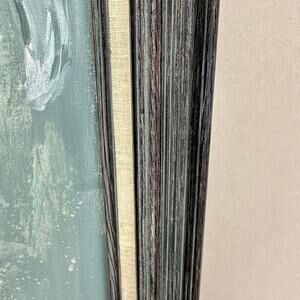 The artwork features an abstract, modernist style with muted tones of gray, white, and blue, creating a dramatic and rustic effect. Perfect for Southwestern, farmhouse, or eclectic interiors.