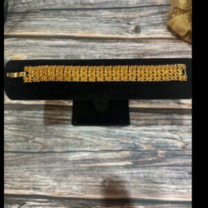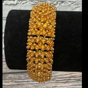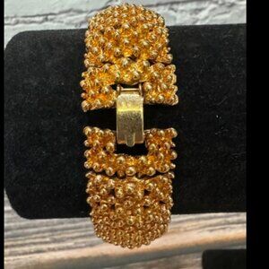 Heavy vintage bracelet! 1973 Sarah Coventry Golden Sunset in brand new condition! Very textured. Signed Sarah on the fold over clasp. Size 6 3/4. ITM822