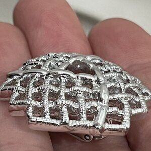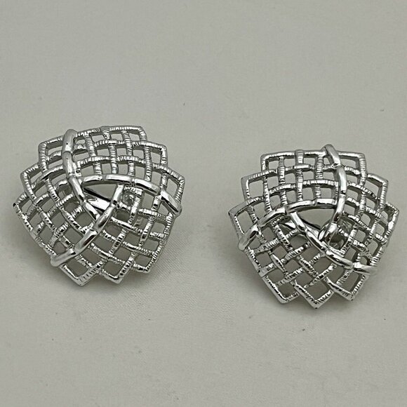 Vintage 1973 Sarah Coventry Silver Mesh Trellis Clip On Earrings