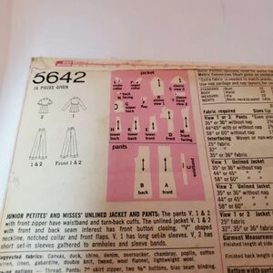 Vintage 1973 Simplicity 2 Style Sleeve Jacket & Cuffed Pant Pattern #5642 Sz 7JP