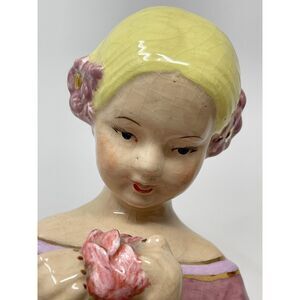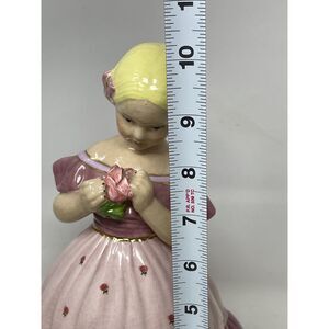Southern Belle. Blond Little Girl. 10" tall. Holding Flowers. Pink Dress, Gown. Holland Mold Figurine. Estate Find.