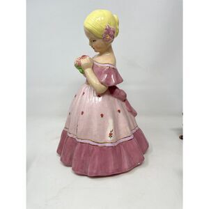 Vintage 1973 Southern Belle Blond Girl Flowers Pink Dress Holland Mold Figurine