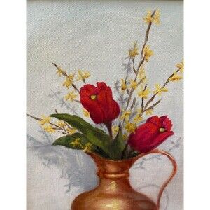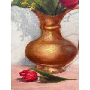 Vintage 1974 Floral Vase Oil Painting Signed in good condition