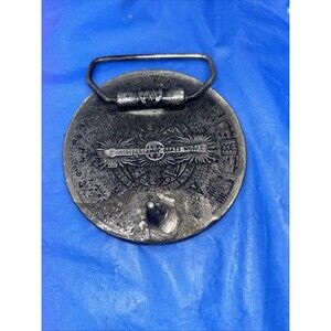 The Vintage 1974 Mayan Aztec Calendar Belt Buckle by Bergamot Brass Works is a unique and rare accessory that adds a touch of history and style to any outfit. With a brand known for quality craftsmanship, this belt buckle showcases intricate details of the Mayan Aztec calendar, making it a standout piece for vintage enthusiasts and collectors alike. Perfect for adding a touch of retro flair to a belt or even as a conversation piece, this vintage accessory is sure to make a statement.