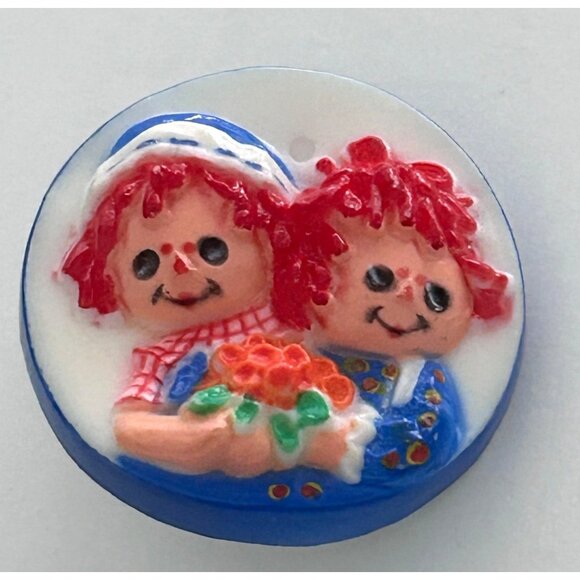 Vintage 1974 Raggedy Ann & Andy Bobbs Merrill Plastic Lapel Pin
