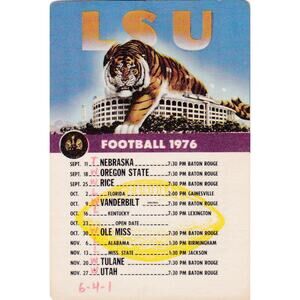 Vintage 1975 1976 1977 LSU Tigers Pocket Mini Football Schedule - A1118