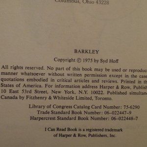 Vintage 1975 Barkley Hardcover Book by Syd Hoff