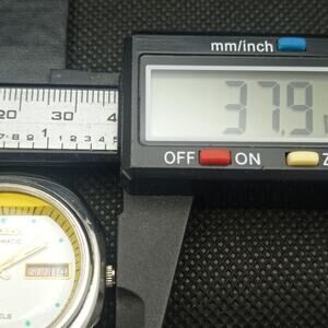 Stainless Steel Case in great condition and almost no flaws. The face features Yellow accents on White Face giving an awesome vintage look overall. It also has a date function!