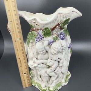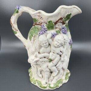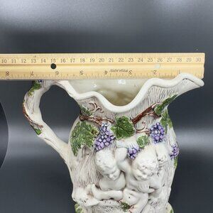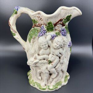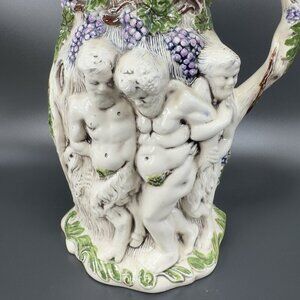 Vintage 1975 Hand Painted Ceramic Jug Pitcher Carafe Artist Signed Naked Men VTG