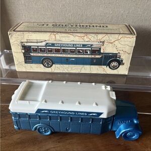 This vintage Avon after shave bottle from 1976 is a must-have for collectors of unique and decorative bottles. The bus shape and greyhound subject make it a rare find, perfect for those who love Avon products and history. Made of glass and plastic, this bottle is in excellent condition and is full of the iconic "Everest" after shave scent. Add it to your collection today!