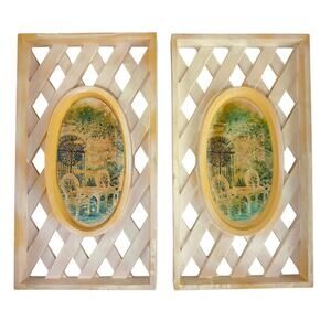 Transform your walls with these charming vintage Burwood lattice garden plaques from 1976! This set of 2 features beautiful diamond trellis frames surrounding oval garden scenes with hand-painted details—think gazebos, lush trees, and peaceful water views. Perfect for adding that cozy retro cottage vibe to your living room, bedroom, or gallery wall.
