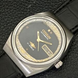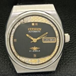Vintage 1976 Citizen Automatic Mens Silver Watch W/daydate & Gold accents