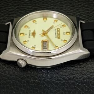 This watch has a stainless steel Case in great condition and almost no flaws. The face features Gold accents on a Radium Face giving an awesome vintage look overall. It also has a date function!