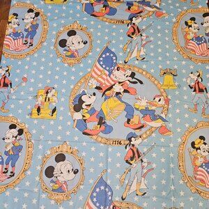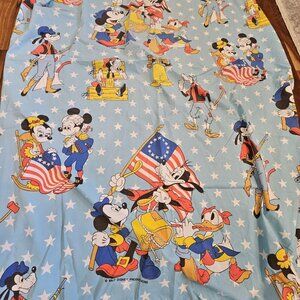 Vintage 1976 Disney Mickey Twin Bed Sheet Set FLAT FITTED Patriotic Fabric Blue