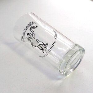 This is a vintage Plains Georgia Home of Jimmy Carter drinking glass measuring 5 5/8 inches high with black enamel lettering and graphics of a peanut character man. Copyright J.R. Legs 1976. This glass is unused and is in mint condition! The first two photos show the glass pictured with cotton on the inside. Selling out of my own personal collection.