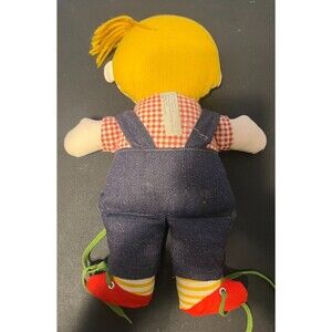 Vintage 1976 Playskool Dapper Dan Doll Learn to Dress Toy 16” Denim Overalls