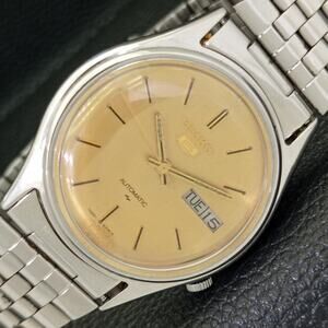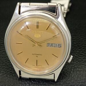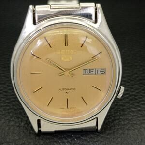 Vintage 1976 Seiko Automatic Mens Silver Watch W/daydate & Gold accents