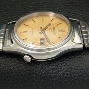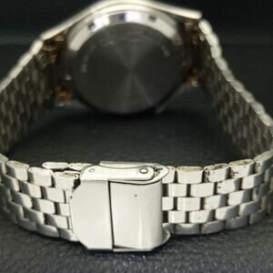 This watch has a stainless steel case in great condition with almost no flaws. The face features Gold accents on a Gold Face giving an awesome vintage look overall. It also has a date function!
