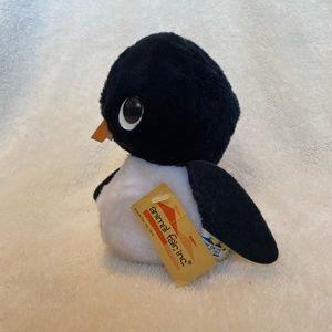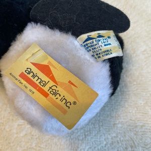 Vintage 1977 Animal Fair penguin plush stuffed animal is in good vintage condition with tags and is about 6" tall and has plastic bean stuffing