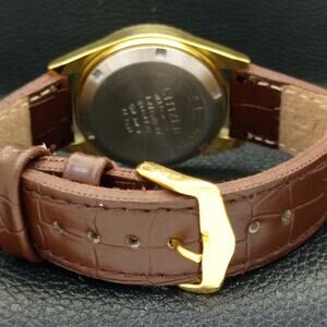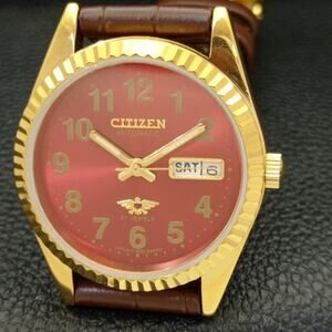 Vintage 1977 Citizen Automatic Mens Gold Watch W/daydate & Red accents