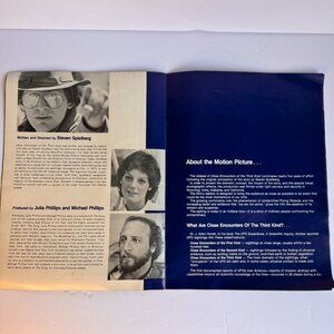 This is a rare and collectible program from the 1977 movie "Close Encounters of the Third Kind" and a 1978 issued Official Authorized Edition Magazine. The program features stunning full color artwork and photos from the film, while the magazine provides an in-depth look at the making of the movie. Both items are in their original form and were manufactured in the United States. This is a must-have for any fan of the classic movie and a great addition to any collection.
