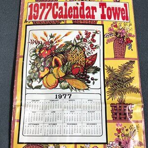 Vintage 1977 Birth Year Cotton Linen Tea Towel Calendar Kitchen Towel Harvest. Comes with original packaging. Perfect gift for birth year. There are a few spots on top. Please see pictures for more detail.