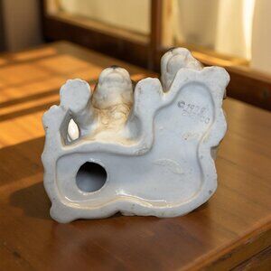 A charming pair of porcelain puppy figurines crafted by Enesco in 1977. These adorable puppies exhibit a detailed, hand-painted finish that captures their lifelike expressions. Perfect for collectors or as a nostalgic decorative piece. The figurines are in good vintage condition, showcasing Enesco's commitment to quality craftsmanship.