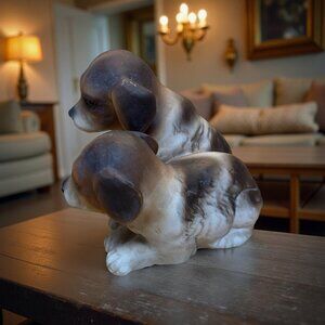 Vintage 1977 Enesco Beagle Dogs Porcelain Puppy Figurine Pair