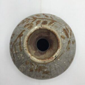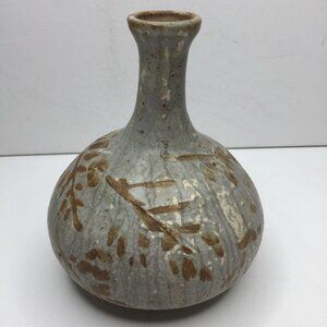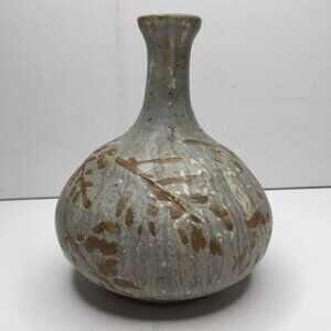 Vintage 1977 Handcrafted Ceramic Pottery Vase Leaf Motif By Jasmin Leaves Brown