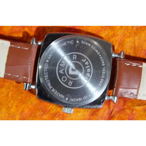 Vintage 1977 Roamer Manual Mens Silver Watch W/Leather Strap & White accents