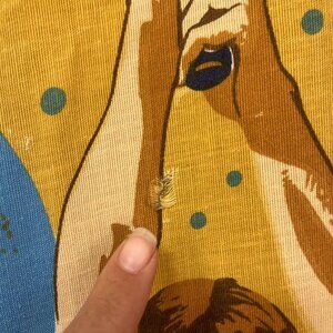 This vibrant vintage fabric features a classic Star Wars design from 1977, showcasing beloved characters on a bright yellow background. Twin size, ideal for collectors or crafting enthusiasts.