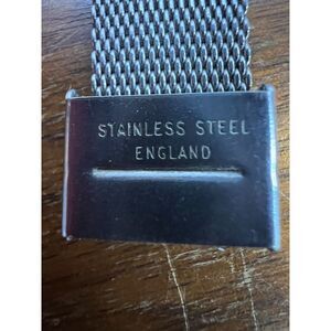 SPECS: 18mm Case width (small/classic size face) 16mm Band width 11mm Case thickness Fits comfortably on 6.75" wrists MAX without stretching the bracelet (fully adjustable sliding clasp) Acrylic crystal (can be polished if scuffed) Silver sunburst dial features silver and black baton indices and hands Silver tone chrome plated case with Milanese mesh stainless steel bracelet/band France case and Taiwan dial Model: 80250-06977 Circa 1977ked last time