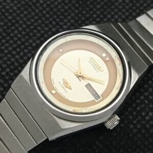 This watch has a stainless steel Case in great condition and almost no flaws. The face features Gold accents on a Patina Face giving an awesome vintage look overall. It also has a date function!