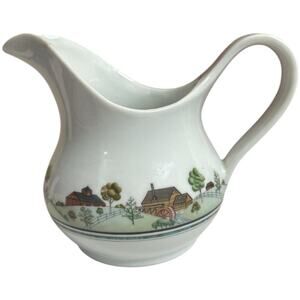 Vintage 1978 Estee Lauder Porcelain Pitcher Farmhouse Cottage Scene
