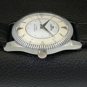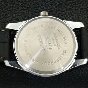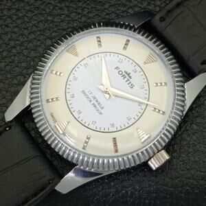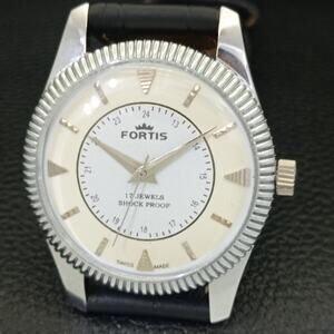 Vintage 1978 Fortis Manual Mens Silver Watch W/Leather Strap & White accents
