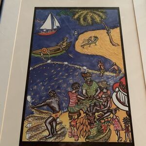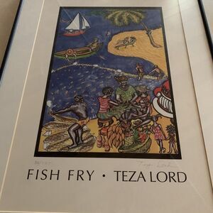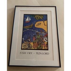 Vintage 1978 Framed Print Teza Lord Fish Fry Caribbean Signed Numbered 30/475