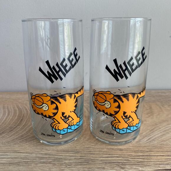 Vintage 1978 Garfield Jim Davis Wheee Set of 2 drinking glasses